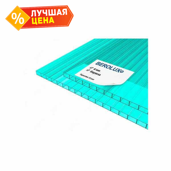 Сотовый поликарбонат 6 мм BEROLUX бирюза 2100х12000 мм