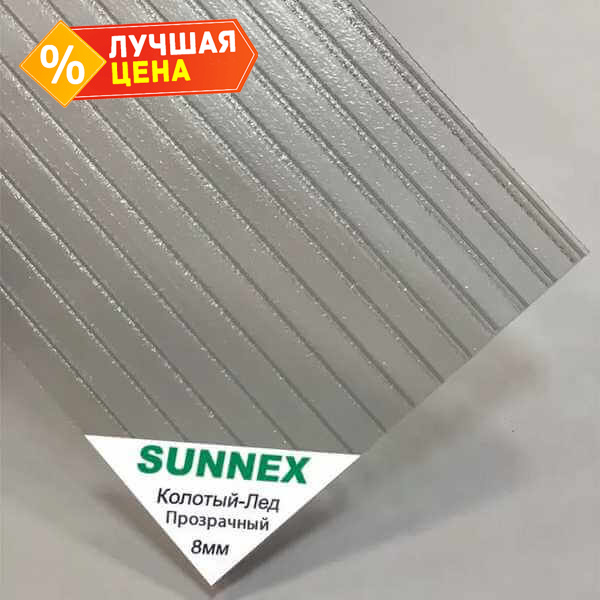 Сотовый поликарбонат 8 мм SUNNEX колотый лед прозрачный 2100х12000 мм
