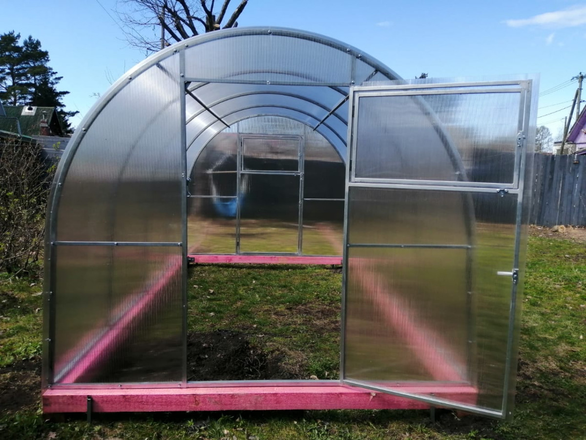 • практичная конструкция: 2 двери и 2 форточки обеспечивают легкий доступ в теплицу и ее проветривание. Размер дверей 171х89 cм, размер форточек в дверях 48х83 см