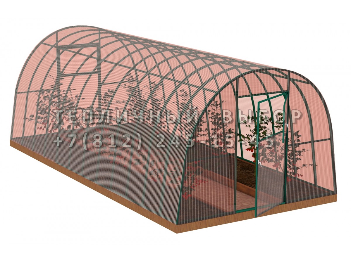 Теплица из поликарбоната-фито Усиленная Арочная 2,5х12 h=2 м профиль 30х30 мм Зеленый