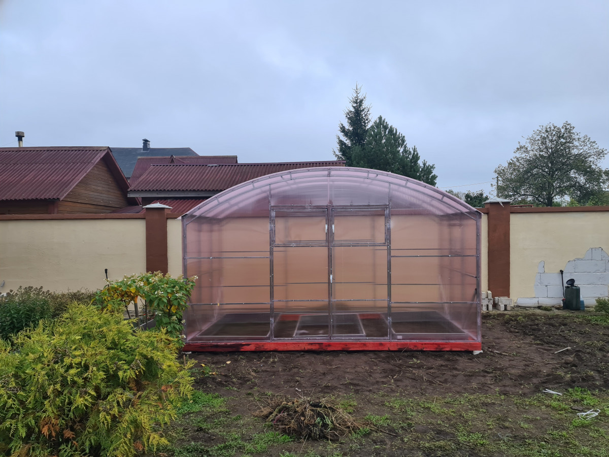 В разобранном виде теплица состоит из отдельных сварных рам в виде дуги. Транспортные габариты 5260х2500 мм. Для перевозки необходим микроавтобус или автоприцеп.