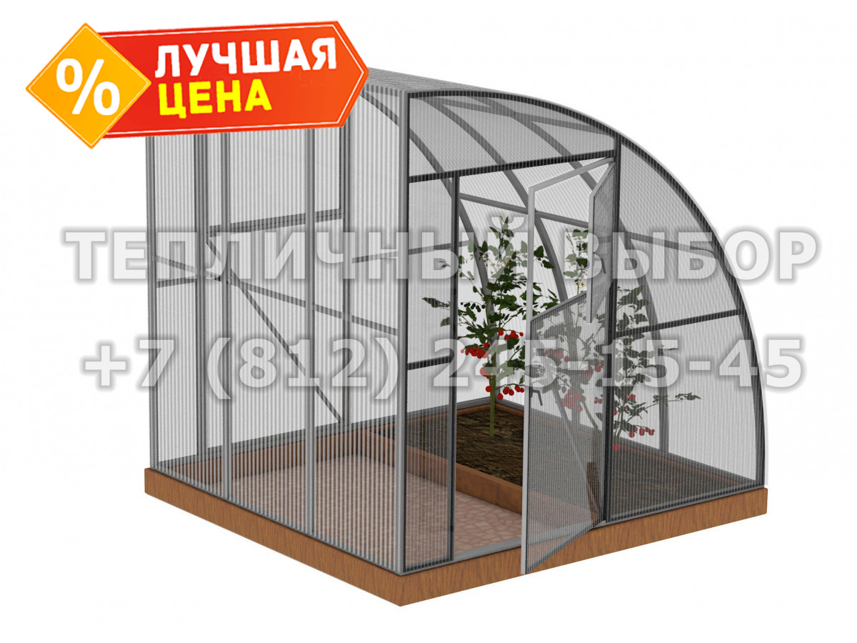 Теплица из поликарбоната Усиленная Пристенная 2,3х2 h=2.1 м профиль 25х25 мм