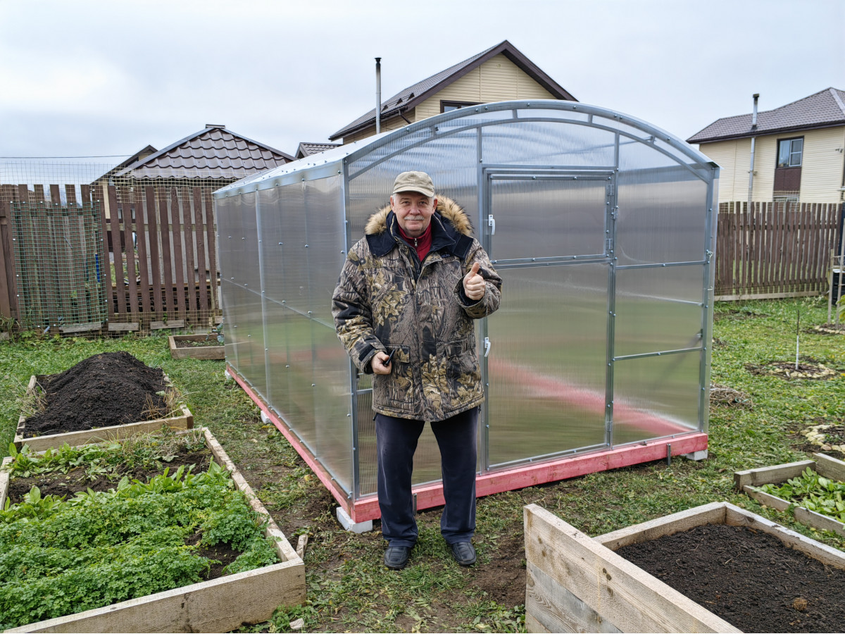 Возможна самостоятельная сборка по подробной инструкции. Сборка теплицы монтажниками-профессионалами компании занимает порядка 3 часов. В качестве основания рекомендуется использовать бетонный, либо деревянный фундамент из бруса. Предварительно брус необходимо обработать антисептиком.